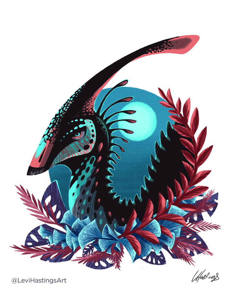 Parasaurolophus Print Presale is live! This is one of my most requested dinosaurs, so I welcomed an excuse to return to one of my all-time favorites from the Mesozoic. As an added bonus, I'm offering 20% off all items in my shop until Dec 2! #paleoart levi-hastings.myshopify.com/collections/fr…