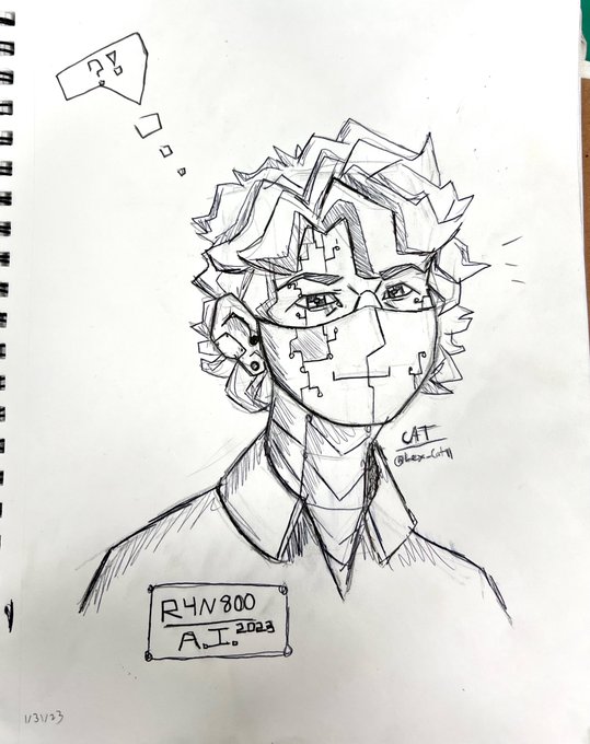 Rare Cat traditional art post WOAH mostly just a doodle I wanna figure out an AI ranboo design. ignore the shading ok I was just having fun RT’s are cool :) #ranboofanart