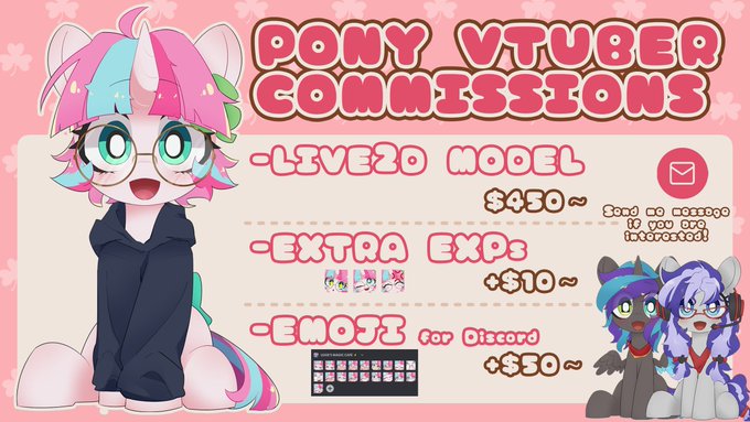 [Pony VTuber Commissions] Opening Live2D model commissions! - Live2D Model - Extra Expressions - Emoji for Discord Send me message if you are interested✨ Sample Video🎞️: youtube.com/playlist?list=…