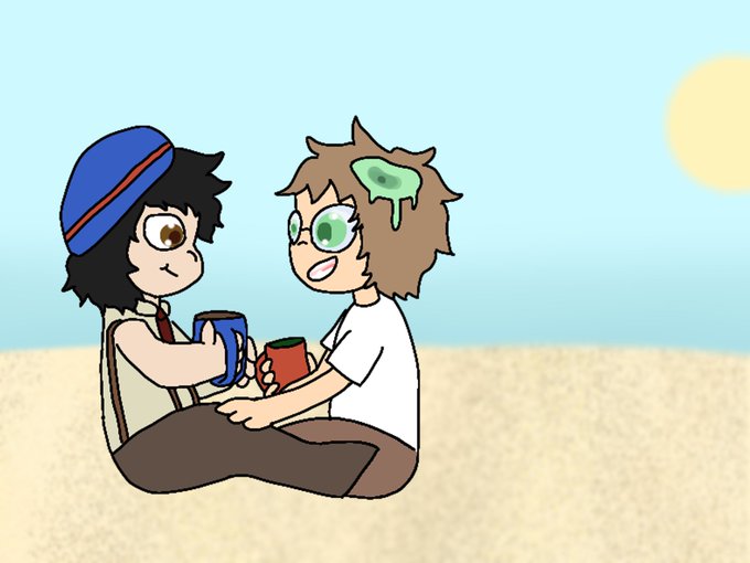 Day 10 We have some dap duo. I miss slime... They're enjoying some tea on a break. #quackityfanart #slimeciclefanart #dsmpfanart