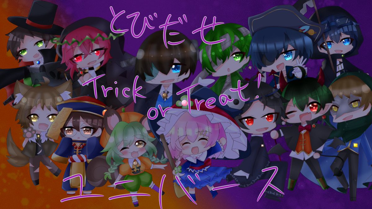 『Trick or Treat!』 #とびユニ自由帳 #のす絵 #スタボアート #やんみの絵 #よつはがき #紅月絵 #ふじみやまで届け #ぴかあーと #はたアート #お絵kaki #テラゾーン #影絵と書いてファンアートと読ませたい #狂人たろアート #たけぉぇかき