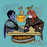 My Necromancer Vikki Gruz'algo beat a drow captain in an arm wrestling contest who the rest of the mostly strength based party proceeded to lose to. Figured it was art worthy, haha. We ruled it as Vikki's familiar, Rocco, distracting the drow. #dnd#dungeonsanddragons#dndart
