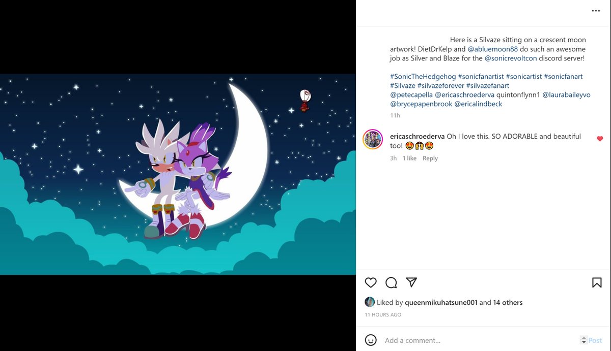 OMG the first voice actress for Blaze the Cat actually commented and loved my Silvaze artwork on my IG! A very huge surprise indeed! #Silvaze #sonicfanart #SonicTheHedgehog #sonicfanartist #sonicartist