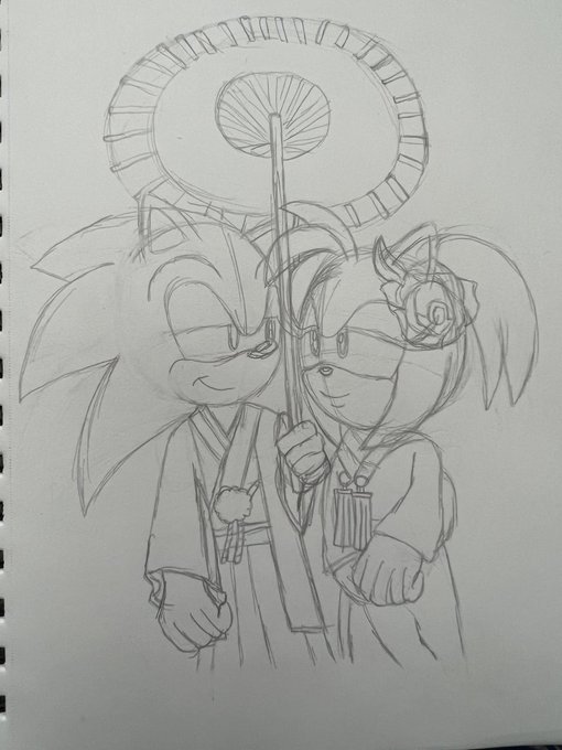 Here is a sketch of Sonic and Amy wearing kimonos. #SonicTheHedeghog #SonAmy #sonic #sonicfanart #sonicartist #sonicfanartist