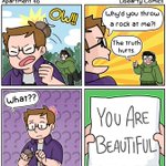 Happy #webcomicday ! I make a series called Apartment 4b that features some funny, relatable, and heartwarming happenings from the lives of me and my family! (I did not actually throw a rock at my husband, but he is beautiful 🧡)