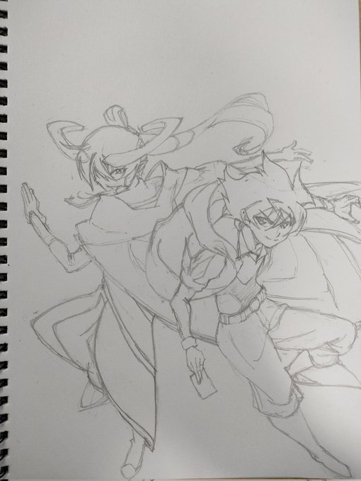 ほんっっっとに久し振りに絵描いた〜 勝手に「デジモンゴーストゲーム」のビジュアルの下描き!😆 #デジモンゴーストゲーム #ペン画 #下描き