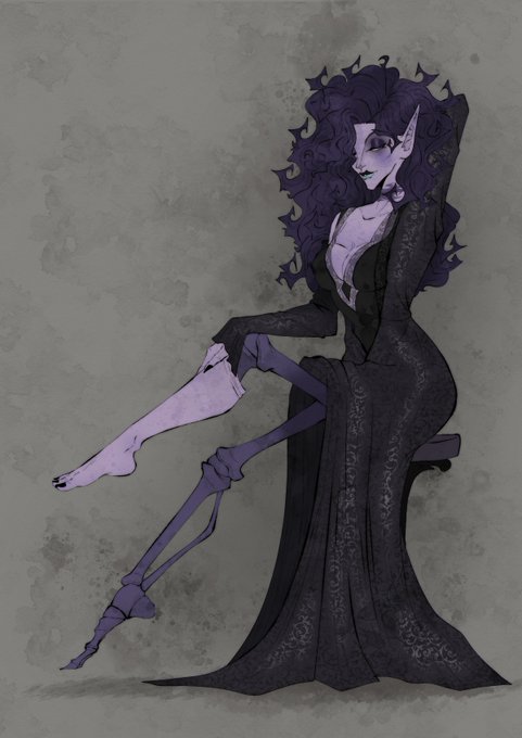 Violixa slipping into something more comfortable. 🦴💜🦴💜 #DarkFantasy #dungeonsanddragons #DnD #DnDcharacter #gothic #dndart #originalcharacter