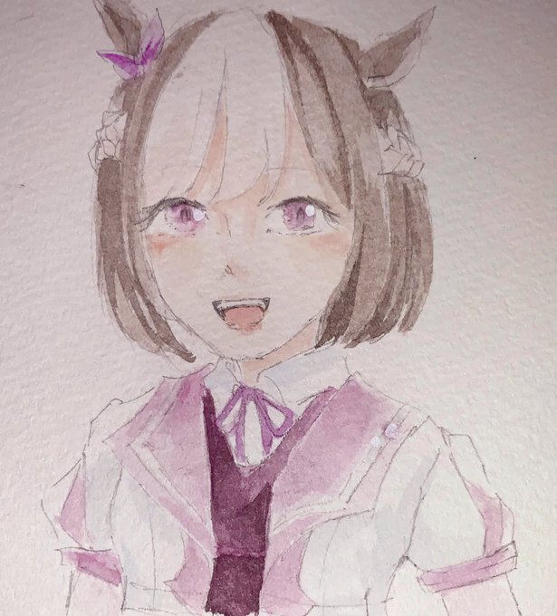 ナイスネイチャ描いてみました! おいっすー٩(ˊᗜˋ*)و #ウマ娘 #ウマ娘プリティーダービー #ナイスネイチャ #ウマ娘好きさんと繋がりたい #イラスト好きな人と繋がりたい #アナログ #水彩