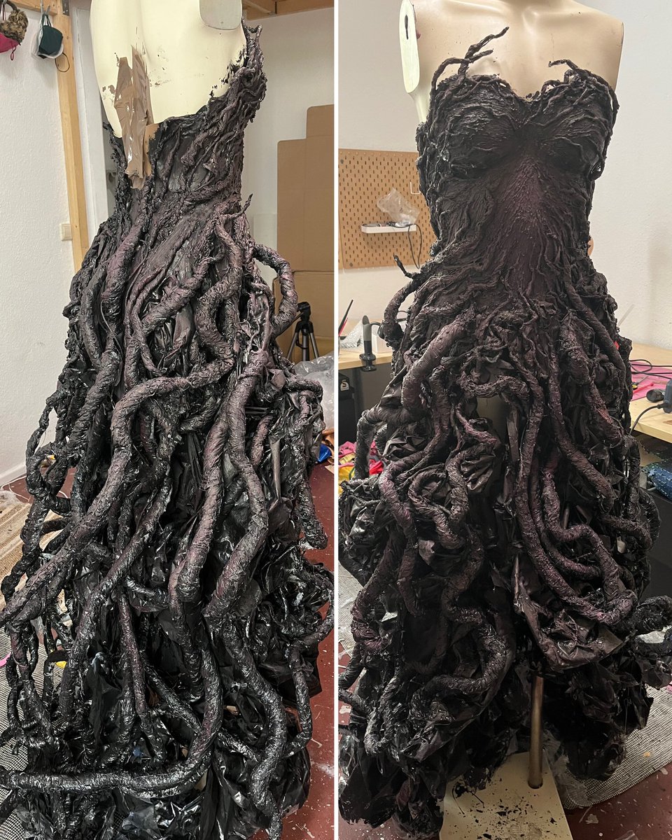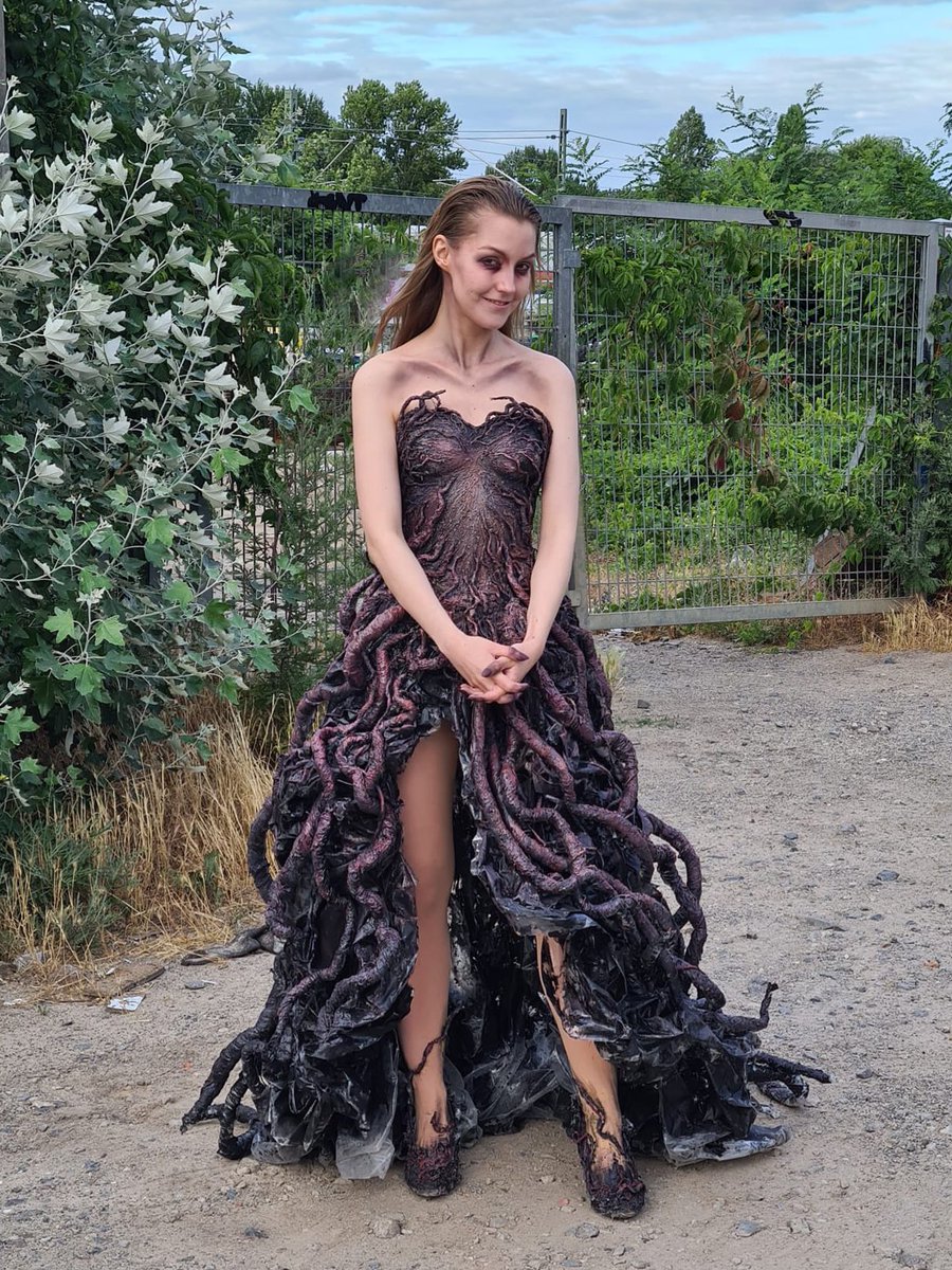 I found the post again that inspired me to make the Upside Down inspired dress from leftover plastic! #StrangerThings twitter.com/strangerwriter…