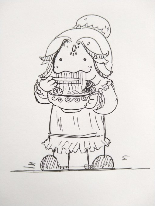 ネグリジェ姿で塩ラーメンを食べてる姿を描けと天啓があった。あとネグリジェとランジェリーがごっちゃになってた。#イチヤ絵巻