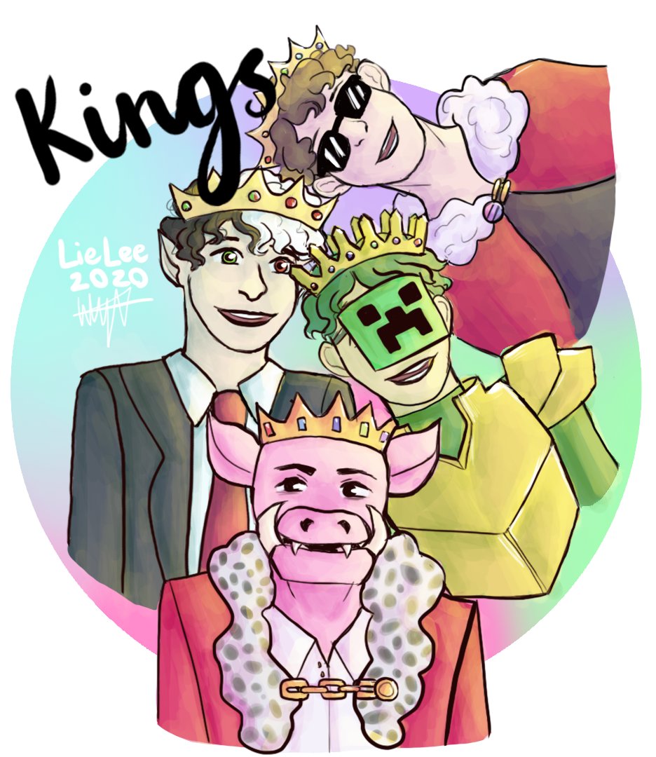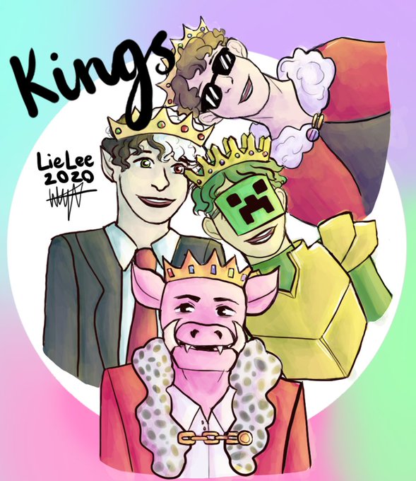 Recently drew all the crown bois on the smp. Not sure howd techno would feel about being a king though. I was very indecisive about the background and text so have all the options. #ranboofanart #technobladefanart #technofanart #eretfanart