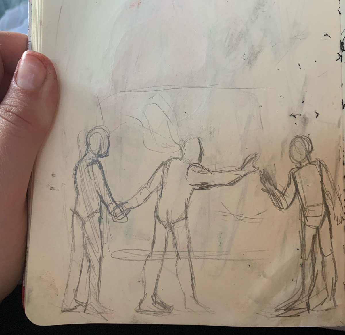 Sketch for some c!fiances artt I’m planning on making cquackity further away but the page wasn’t big enough lmaoo #sapnapfanart #karljacobsfanart #quackityfanart #fiancetwt