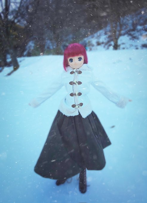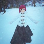 #今夜のドール撮影120分一本勝負 【げんそうてき】 小雪がちらつく中、ユキちゃんの赤い髪が暖かく揺れていたよ❄️
