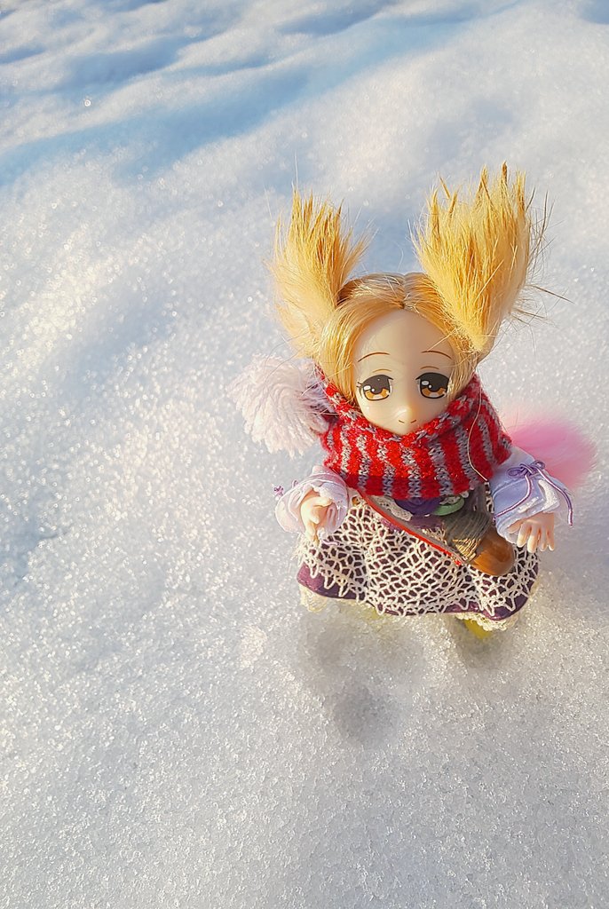 2 120 #今夜のドール撮影120分一本勝負 【げんそうてき】 小雪がちらつく中、ユキちゃんの赤い髪が暖かく揺れていたよ❄️ 22/02/19 23:46