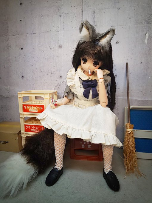 #今夜のドール撮影120分一本勝負 【かがむ】 接客業はストレスが溜まるようです シッポもしょんぼり💦 ワンコ:フーーーーーッ・・・