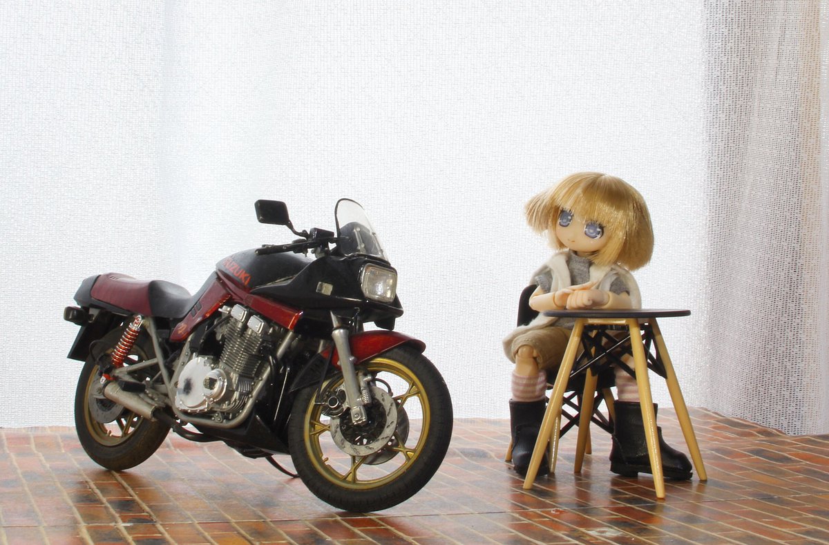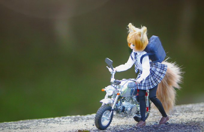 #今夜のドール撮影120分一本勝負 【アングル:したから】 ボブリ:今年も暑いぜ!🦊💦☀️ #ドールとバイク