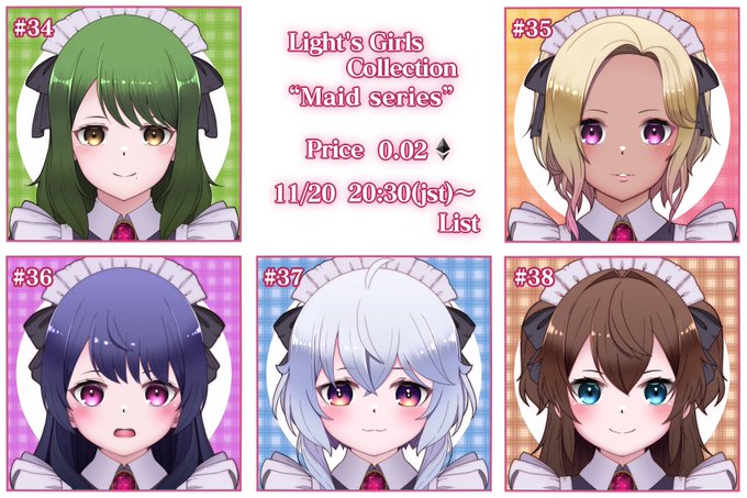 【Girls最新作!!📢✨】 Girls最新作無事Mintが完了しました‼️ 今回からロリっ娘メイドも登場です!💖 明日11/20 20:30(jst)から0.02ETHでlist予定です📢✨ 是非お見逃しなく!☺️💖 コレクションページはこちら!⬇️ opensea.io/collection/lig… #NFT #NFTCommunity #nftart #NFTs