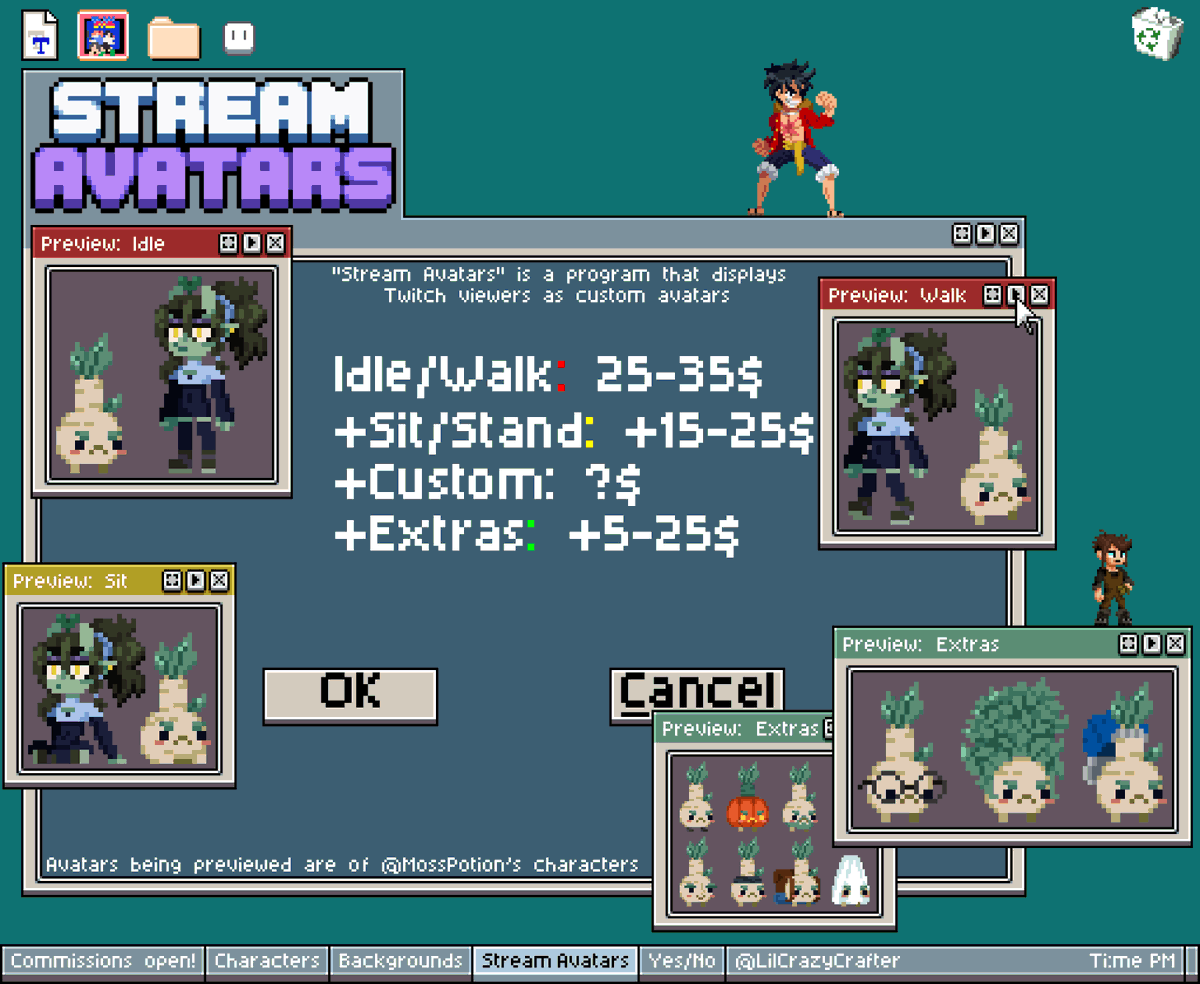 After being asked for so long, I'm finally opening commissions!! All the info is in the images below, I'll respond to any requests I get as soon as I can!! (I'm even doing Stream Avatars!) #commissionsopen #commissions #pixelart #aseprite