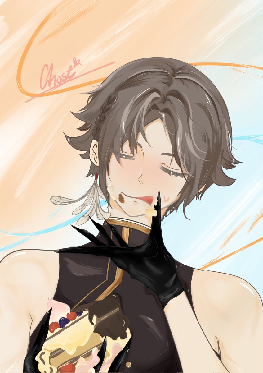 1 1 #MystaGift2 #MystArt Merry Christmas!🎄🎄 I painted you as a gift🎁 for all mistakes. It's not very good but I hope you like it.🥰 Finally, you and vox will spend a warm Christmas in my bed(P4)😃😃 22/12/25 15:00