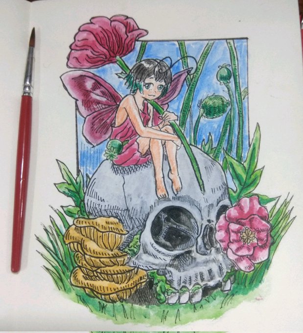 #inktober2021day15 :Helmet Shinmyoumaru Sukuna from touhou #inktober2021 #inktober #inkillustration #touhou #touhouproject #東方Project #東方 #FANART