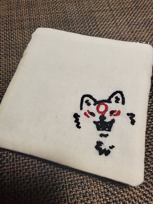 私が描いたあま公を母が刺繍してくれてポーチ作ってくれた!!! 世界にひとつだけの大神………✦幸✦