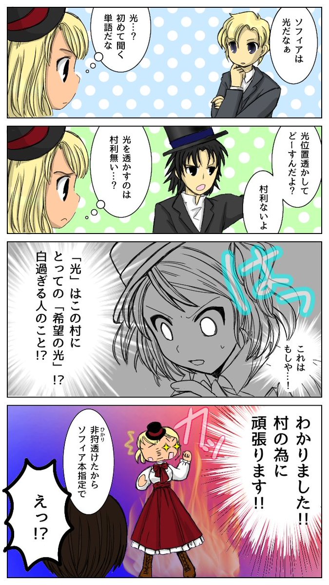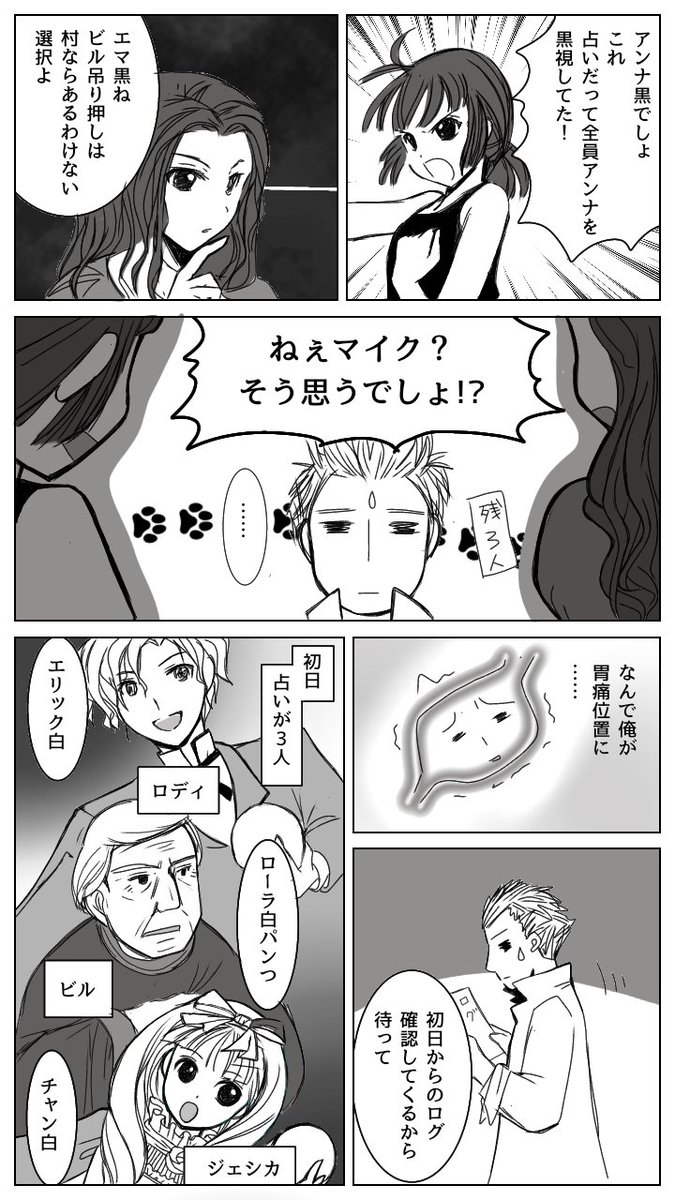 大事故\( ・ω・)/ 3COまでならまぁ良くみかける。 これは狂信・黒・黒猫・真。 サンドラのセリフが好きだったので記念に描きましたw #人狼ジャッジメント #人狼ジャッジメントイラスト
