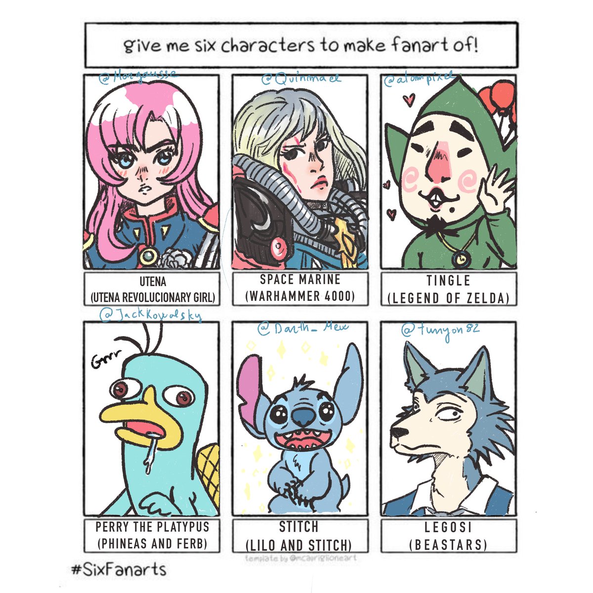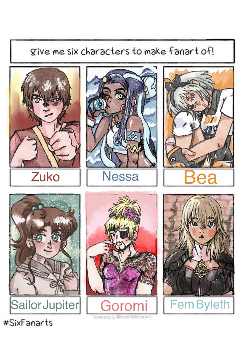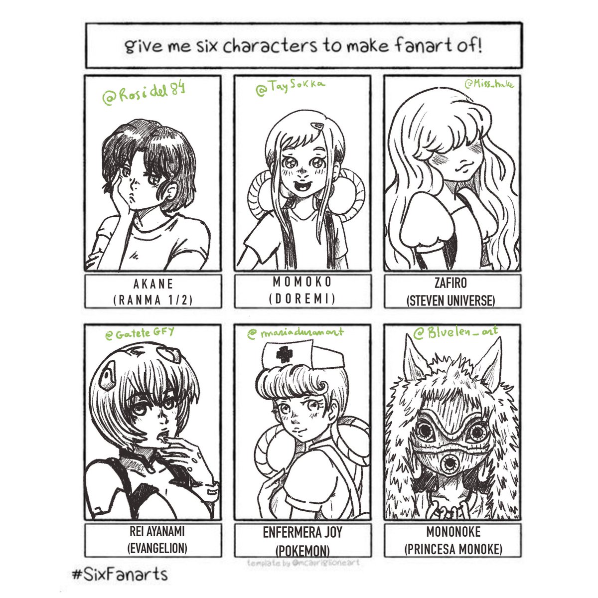 los #SixFanarts que hice este 2020 #fanart de linia, a grises, base color y completos. ¿que personaje os gusta mas?