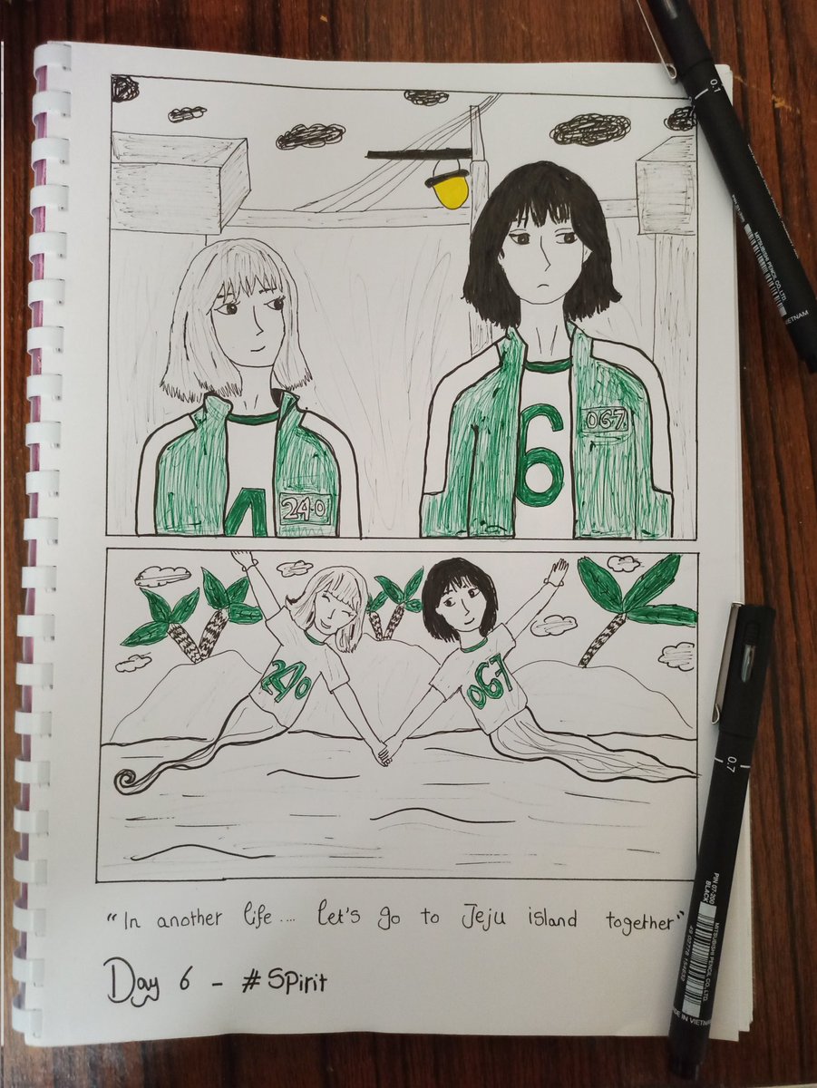 Inktober - Day 6 (Spirit) "In another life... let's go to Jeju island together 💙" *Inspired by a squid game scene* #inktober #inktober52 #inktober2021 #inktoberallyearlong #myinktoberstory #ink #art #inkwork #sketch #design #inking #inkwork #doodle #spirit #inktoberday6