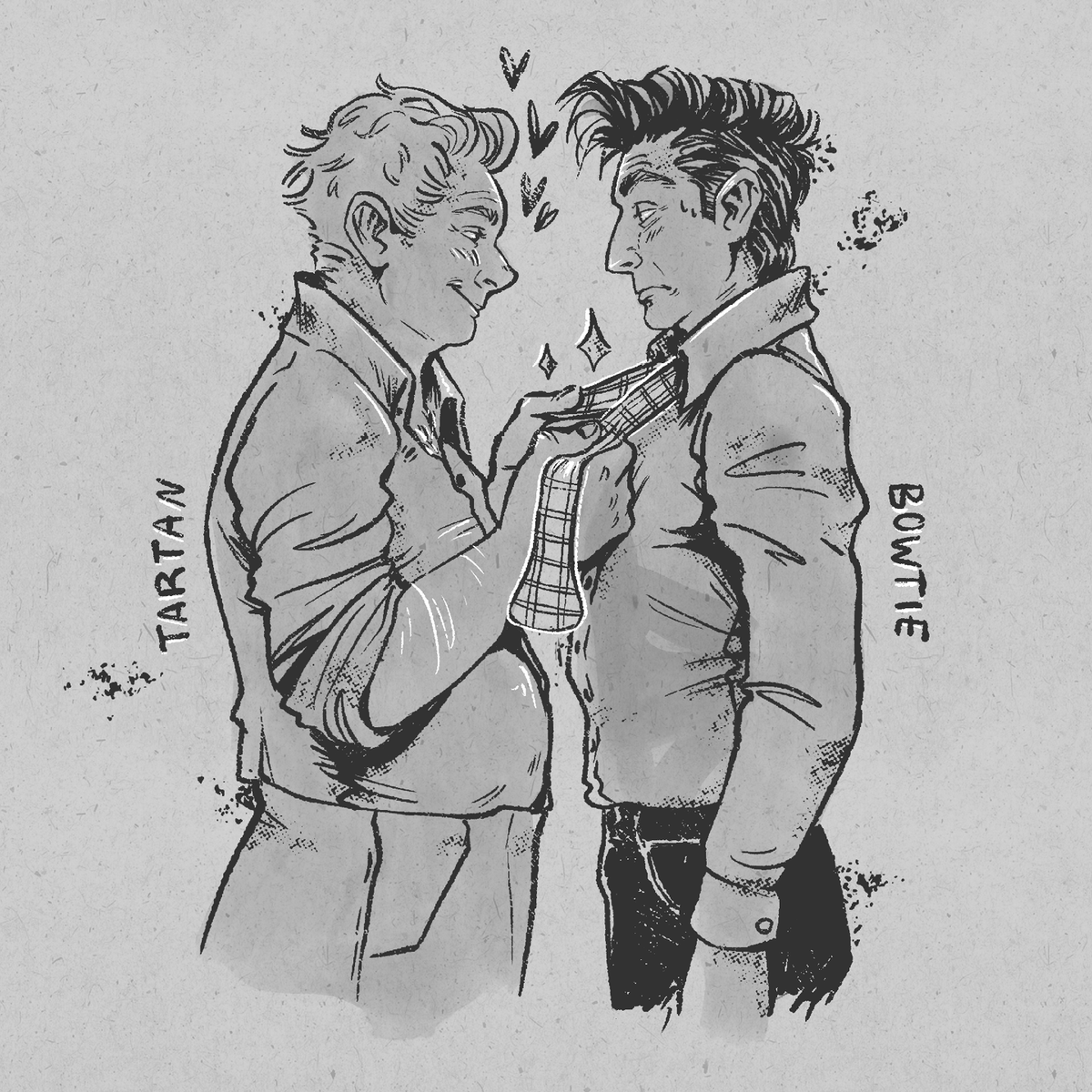 #Artober Day 4 - "Tartan Bowtie" What you do for your angel... It's a good deal though because he'll get to see the collar of Aziraphale's shirt unbuttoned hoho #GoodOmens #IneffableHusbands #Gotober #inktober