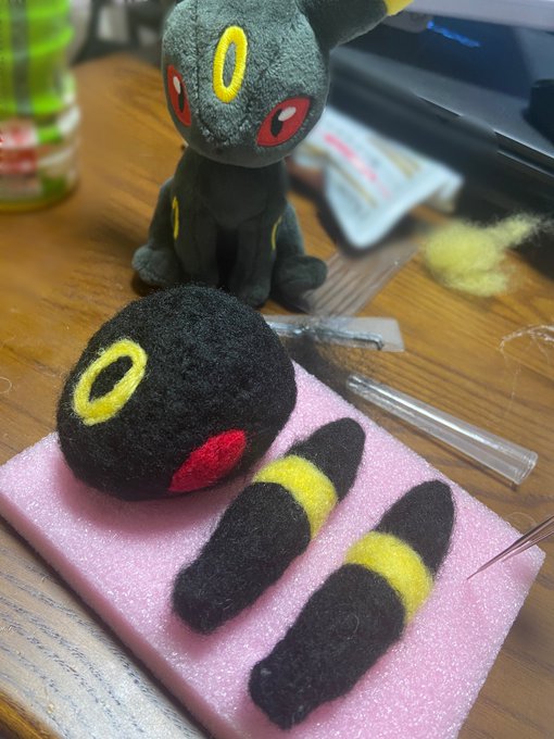1 6 ちくちく途中まで #ブラッキー #羊毛フェルト #ポケモン #作ってみた #ハンドメイド 22/03/17 12:19