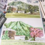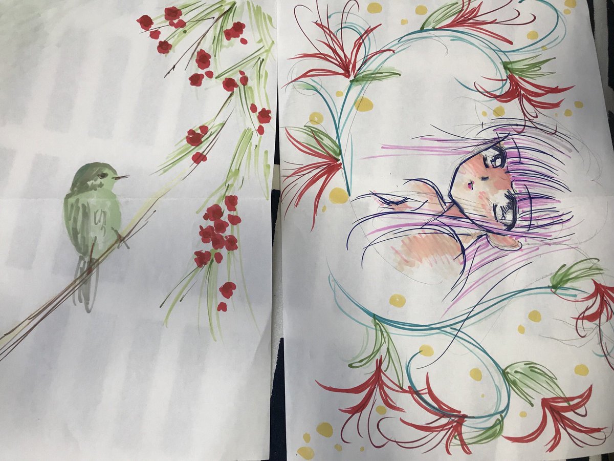 こないだのグループ展でのお絵描きー♪ 萌え絵で女の子を描きたいオタクラインと、生き物や植物やデフォルメキャラを描きたい一般向けライン、2つのラインが自分の中にあります。 #絵描きさんと繋がりたい