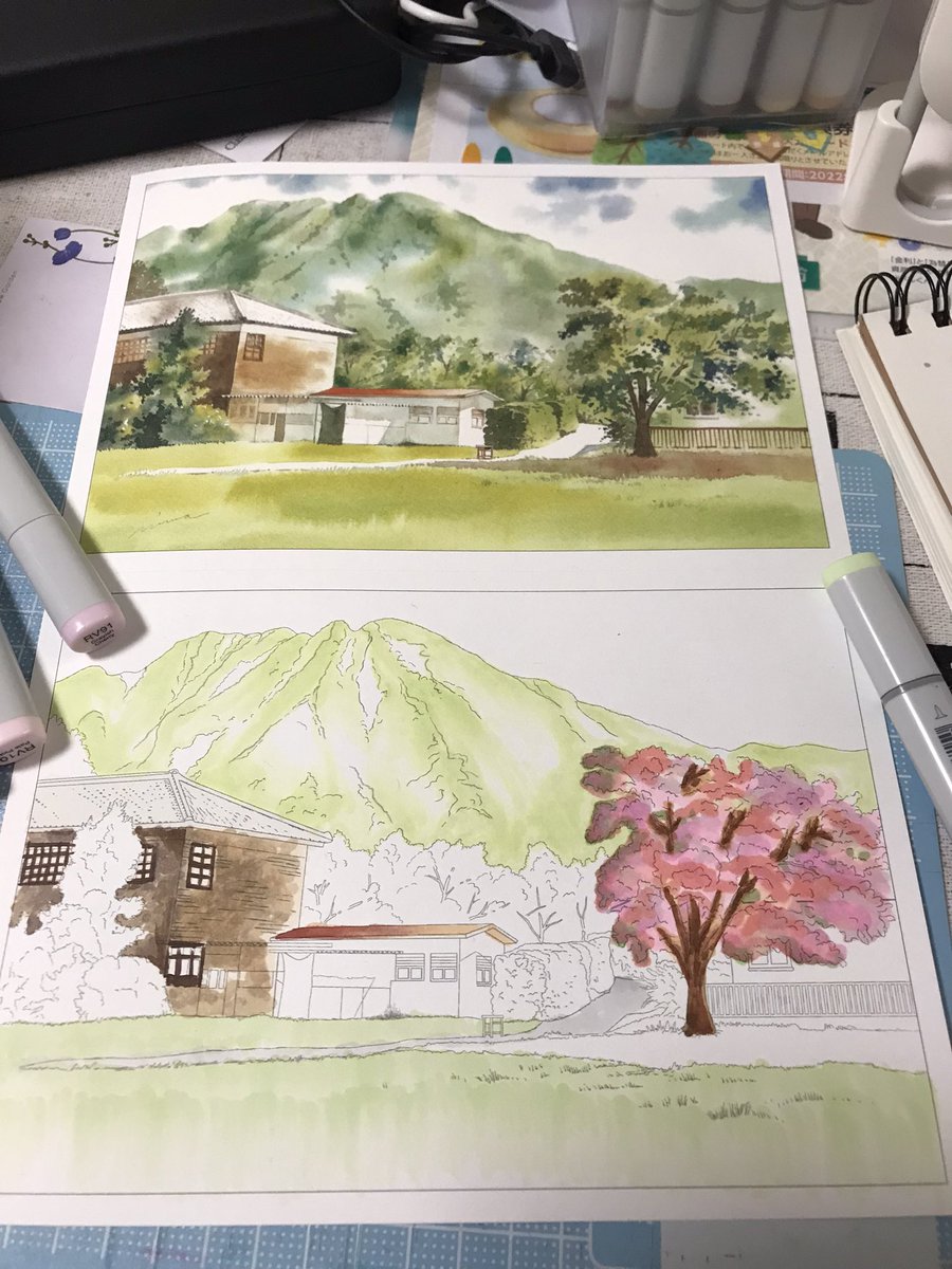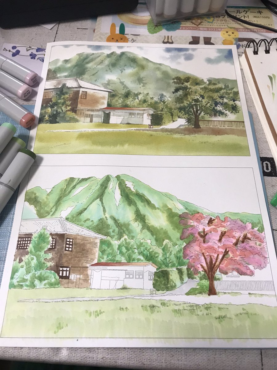 頬紅を入れます。 ちょっとした差ですが、割りとこだわってるところ。 私は、本物の化粧品のチークを使ってます。 意外と紙に馴染みやすく、指先でもぼかしやすい。 用途によっては、パステルより使いやすいと感じます。 #アナログイラスト #コピック #アナログ絵描きさんと繋がりたい