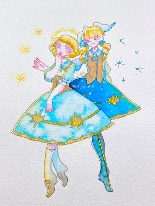 1 9 煌めく魔法は砂時計 昼のCleaと夜のLilista #創作イラスト #水彩画 #絵描きさんと繋がたい 21/07/20 21:00