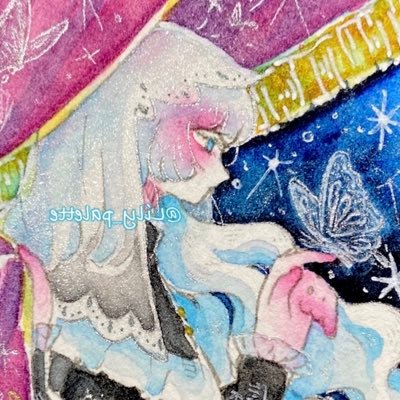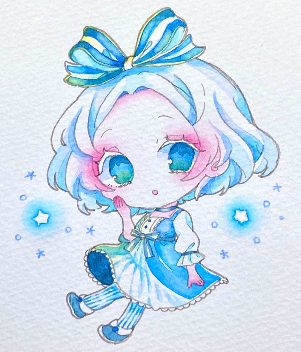 とっても可愛らしい線画を お借りして参加させて頂きます! お気に入りの星空色縛りで…🌌 使用画材:ARTIST DRAWING水彩紙 COPIC MULTI LINER ・色鉛筆 透明水彩(ホルベイン、W&N) #雲丹の6色 #透明水彩
