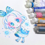 16 80 とっても可愛らしい線画を お借りして参加させて頂きます! お気に入りの星空色縛りで…🌌 使用画材:ARTIST DRAWING水彩紙 COPIC MULTI LINER ・色鉛筆 透明水彩(ホルベイン、W&N) #雲丹の6色 #透明水彩 21/11/20 22:18