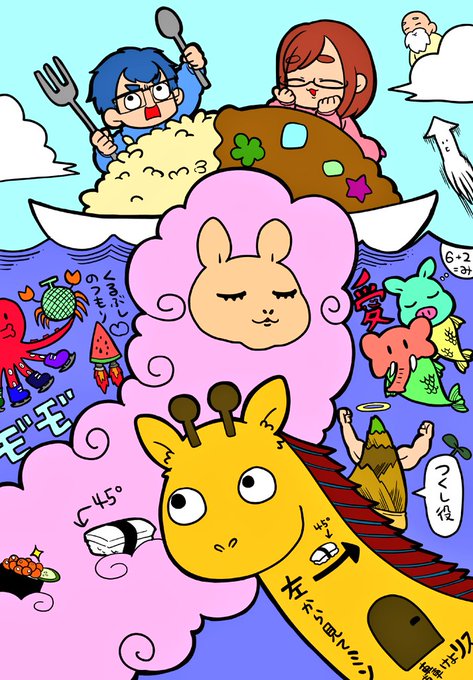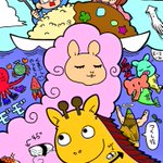 2日休みの空いた時間にさやジオぬりえやりましたー。 楽しかった!! ブタ魚、ゾウ魚、カレーまでは変わった色を心がけてたんだけど最終的に凡庸な塗り絵になってしまった(笑) #なつめさんち #なつめさんちの美術室