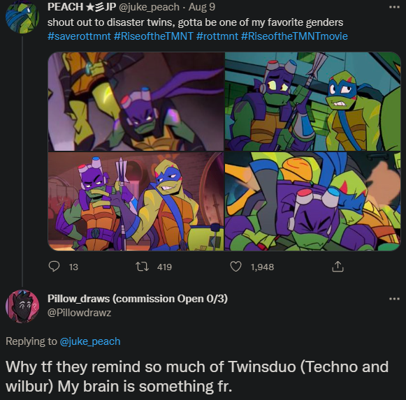 Twins duo as Disaster Twins based off a tweet I saw (I tried to do disaster twins as twins duo but they looked really ugly and I didn't like it) #twinsduofanart #technobladefanart #wilbursootfanart #RiseoftheTMNT