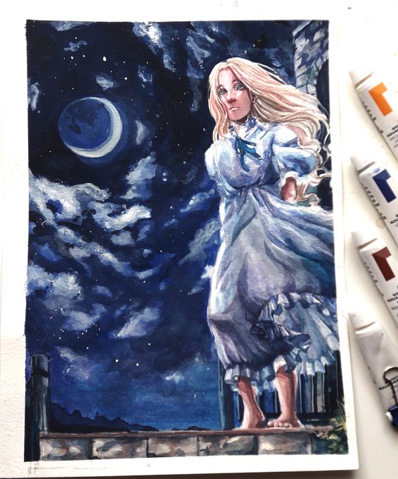 My #ghibliredraw is complete #WhenMarniewasthere #思い出のマーニー 🌒🌿 . . #StudioGhibli #Ghibliredrawchallenge #myart #Gouache #Watercolor