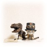 3 13 こんばんは🙂 新作は木彫りの恐竜と豆猫を合わせた「JURASSIC CAT」 画像にはDINOSAUR CATと表記してますがどちらでも可🙂☝️ #猫好きな人と繋がりたい #羊毛フェルト #レザークラフト #インテリア猫雑貨 #ミニチュア猫 #羊毛アート #レザーアート 22/10/23 20:09