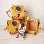 昨日の動画からこのようなミニチュアキャリーバッグが出来上がります 🙂✨ #猫好きな人と繋がりたい #羊毛フェルト #レザークラフト #インテリア猫雑貨 #ミニチュア猫 #羊毛アート #レザーアート