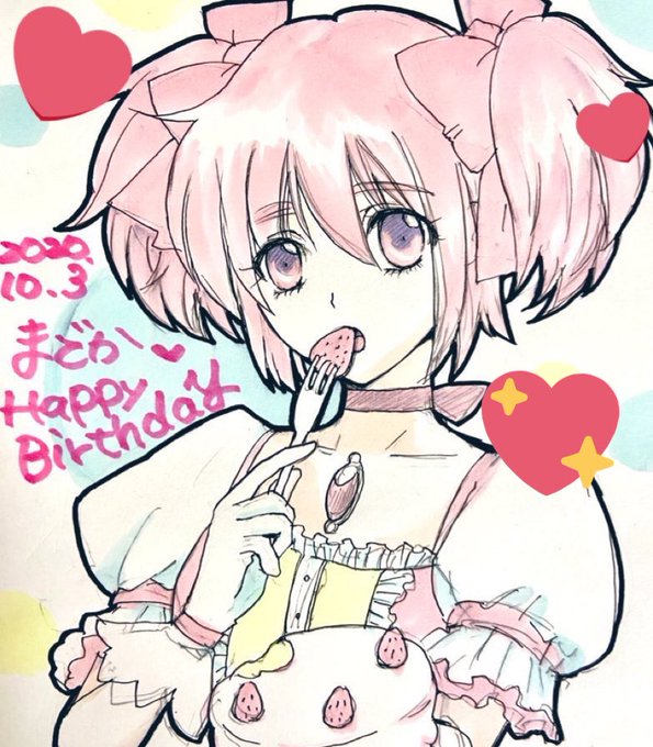 まどかぁー!💕 ハッピーバースデー🎂🎁🎉 急いで描いたから雑ですが💦 まどか愛はあるぞ☺️☺️☺️ (まどかのツインテを犬の耳みたいにもっふりさせるのが好き) 稼働の方はファイト💪 #鹿目まどか生誕祭2020