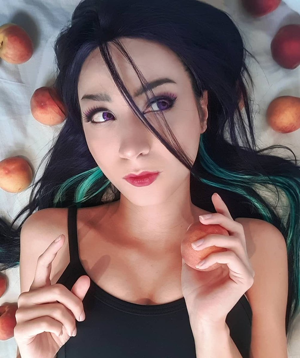 Kai'sa delicate fragrance 🍑 O episódio de hoje mostra a queda de kaisa tentando encontrar a saída onde a sua escalada da vida entao começa sendo agora kai'sa. Assim como seu amor por pêssegos. #LOLtubro #leagueoflegends #cosplay @LoLegendsBR @KDA_MUSIC