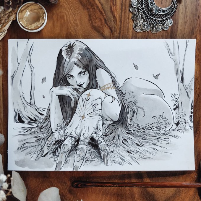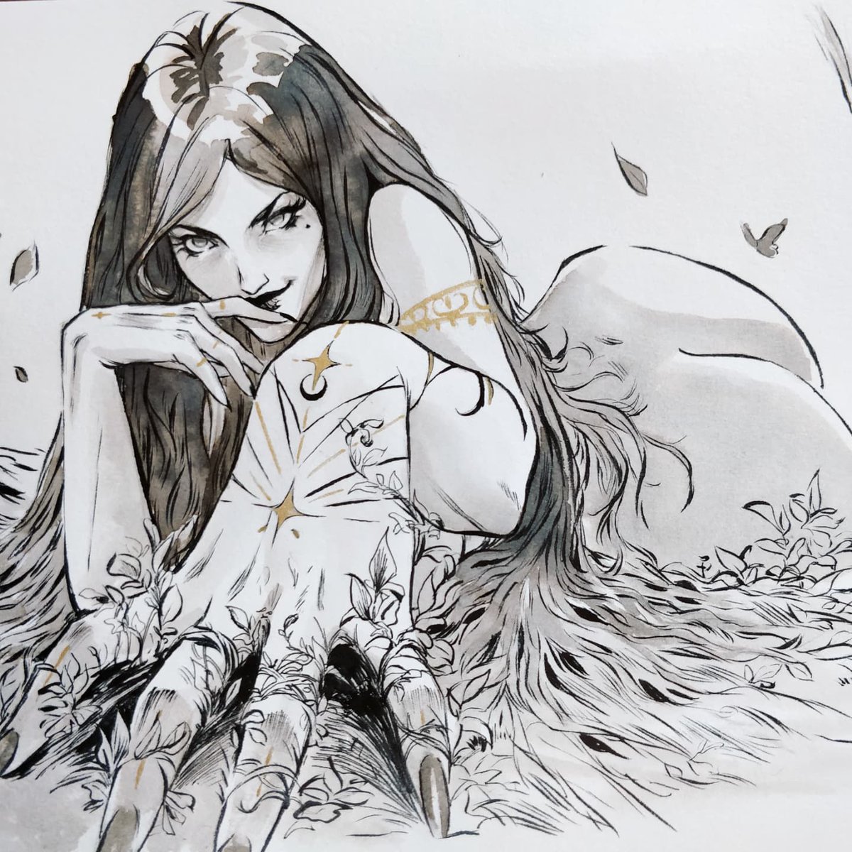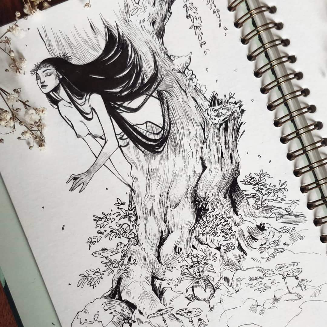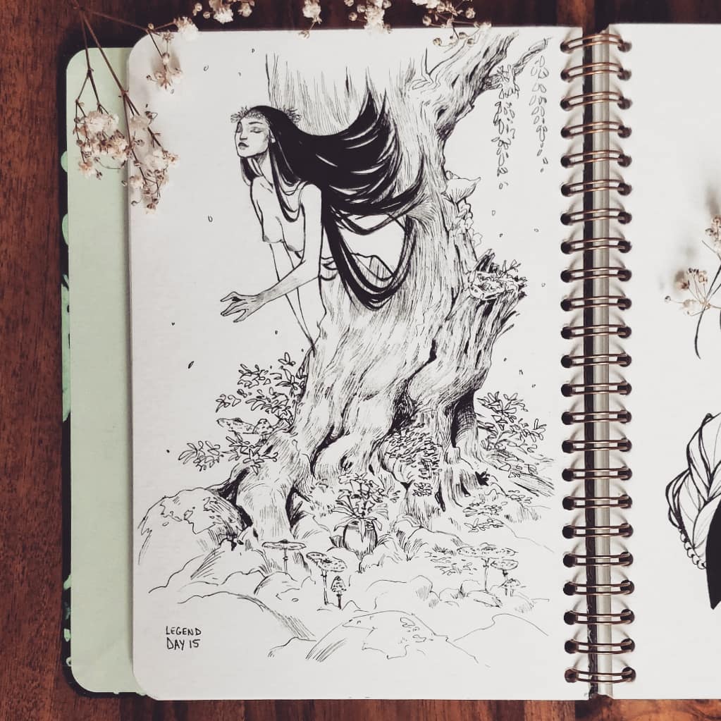 Here is the day 15 Legend. ... Yeah I am super late and I am doing them not in the right order this year XD. *Each time there is fresh flowers in the pot, she can wakes up and see the world again* #Inktober #inktober19 #legend @mosseryco book :)
