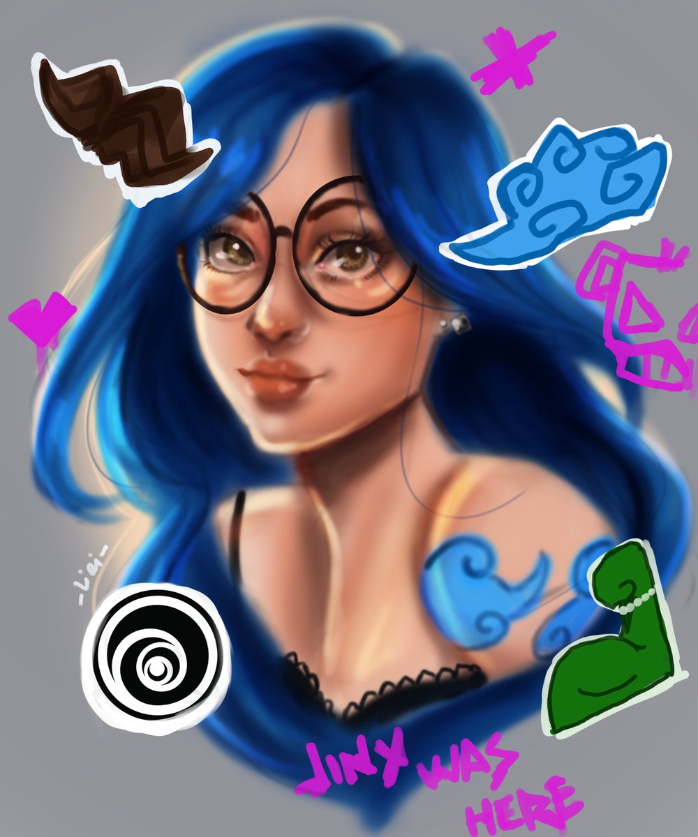 #LOLtubre #día13- Último aspecto que compraste Bueno, me salió una muy buena oferta de esta skin de Jinx en la tiendita así que me la llevé, ahora nomás me falta la proyecto pa completar la colección (momentaneamente xD) . . . #creadoresdelollatam #fanart #artoflegends #jinx
