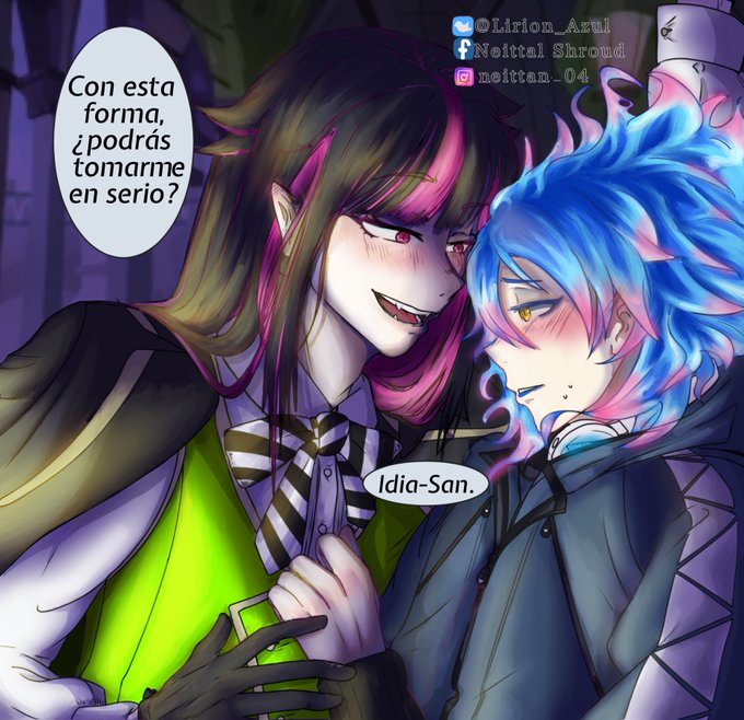 Y uno de mis últimos dibujos :D Puedes seguirme en mis otras redes! @/neitt_shroud (vía tik tok) El resto pueden verlo en la imagen<3 #LiliaVanrouge #idiashroud #nightravencollegue #shipping #love #diasomnia #ignihyde #twstファンアート #twistedwonderland #artist #digitalart