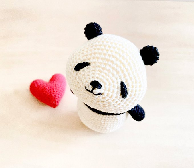 本日のにっこり♡パンダさん🐼 #minne minne.com/items/27110250 お鼻がツン♡ お腹がポン♡ #ハンドメイド作家さんと繋がりたい #あみぐるみ #かぎ針編み #パンダ