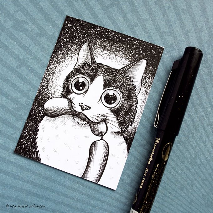 Guess what? My drawings for days 1 - 7 of #inktober2019 are available to buy from my Folksy store! 😘 BUY THEM HERE --> folksy.com/shops/lisamari… #inktober #originalart #aceo #cats #catart