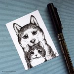 Day 6 of #inktober ✒ "Husky" - A kitty and his husky pal posing for a photo. Say CHEESE!! 😸🐶 #inkober2019 #inktoberday6 #drawing #cat #dog #illustration