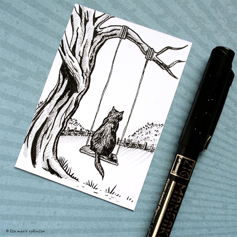 Day 9 of #inktober ✒ "Swing" - A nice easy word up for interpretation today... and once again I've forgotten to sign it before taking the photo 😩 #illustration #inktober2019 #inktoberday9 #cats #catart