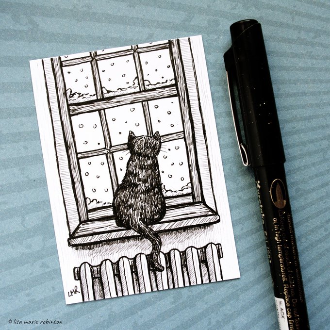 Day 11 of #inktober 🖋️ "Snow" - As she sat at the window, watching the falling snow turn everything white, she purred quietly. Her tail brushing the warmth of the radiator beneath. 🐈🌨 #illustration #inktober2019 #inktoberday11 #cat #catart #drawing
